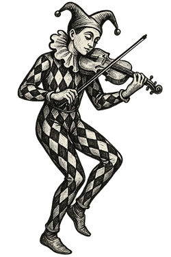y un tipo con vestido de arlequín